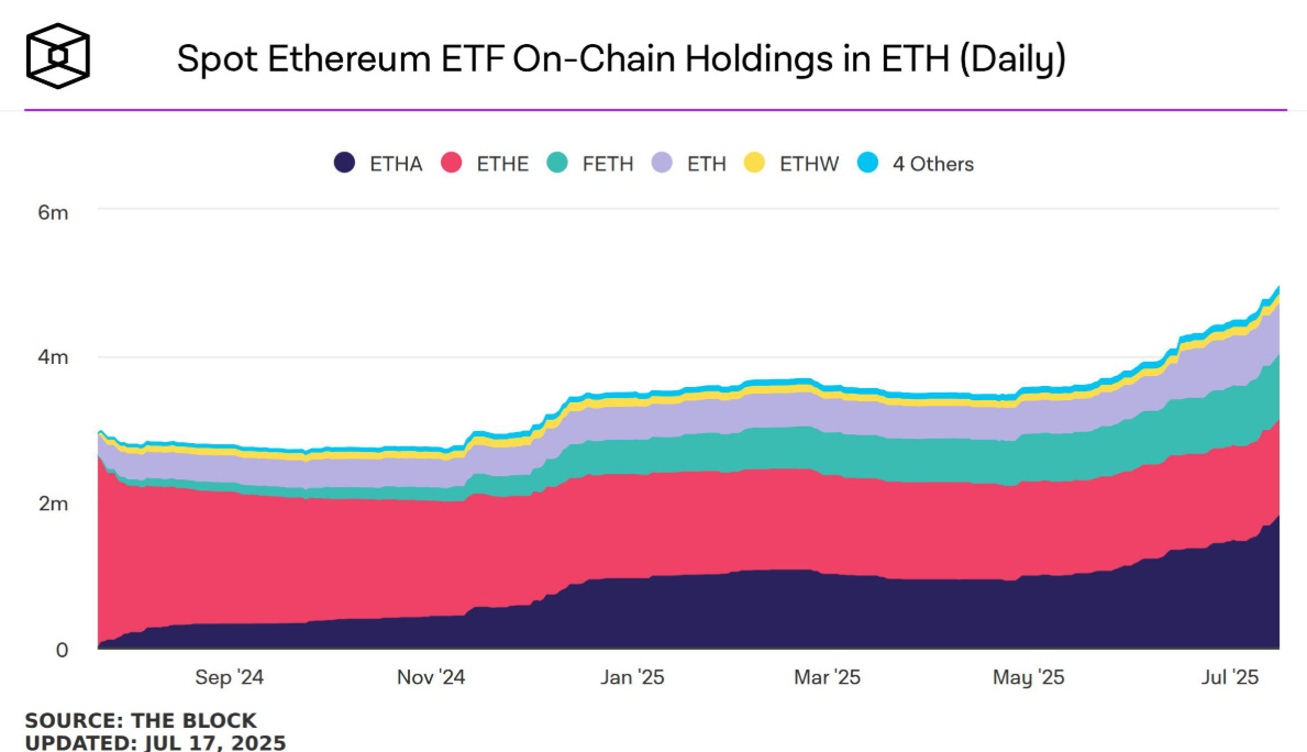 As of Wednesday, Ethereum holdings for spot ETF’s hit an all time high after $726m of net inflows that day. Hat tip to The Block for the chart.