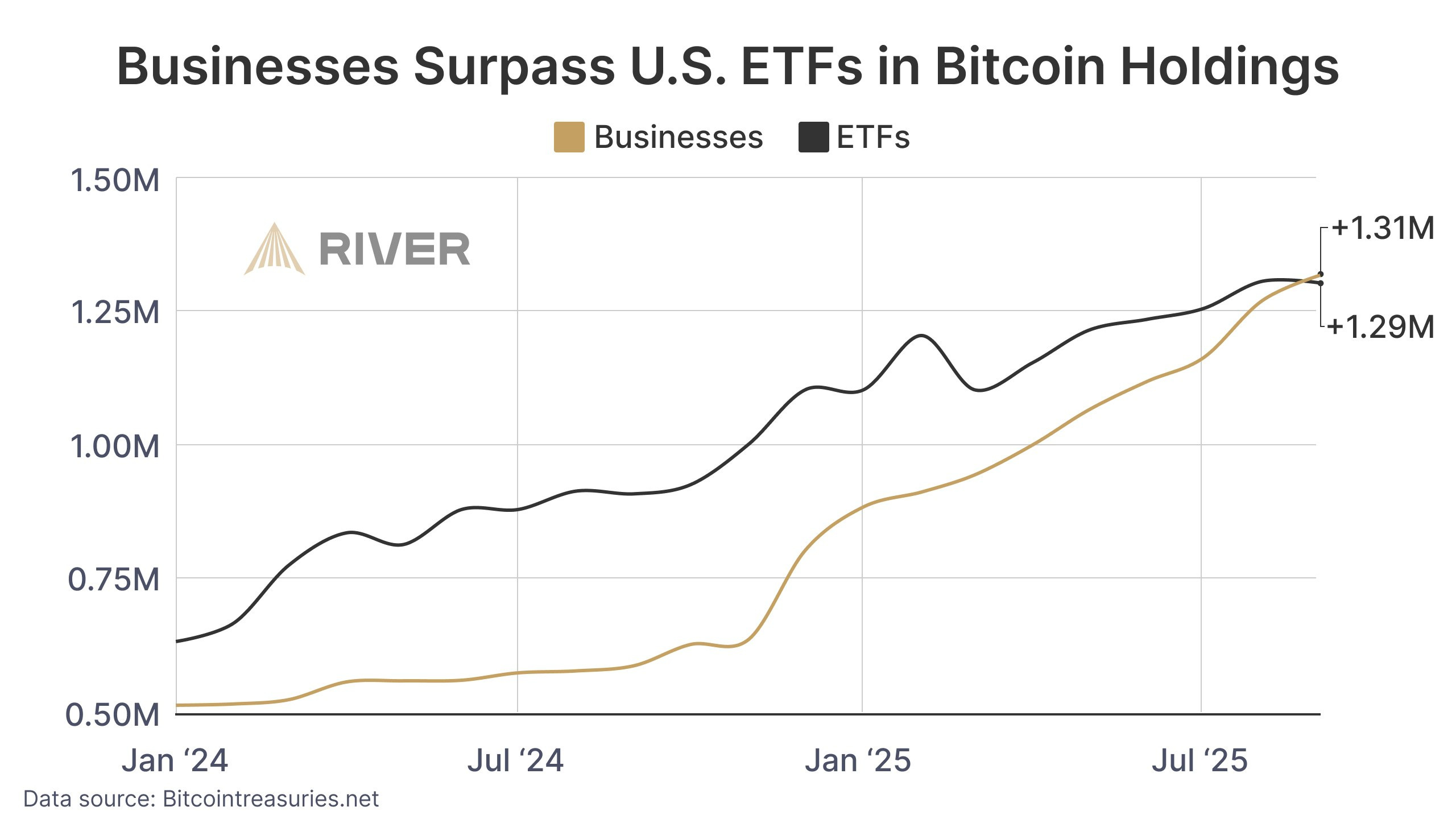 Businesses now hold more bitcoin that the ETF’s.
